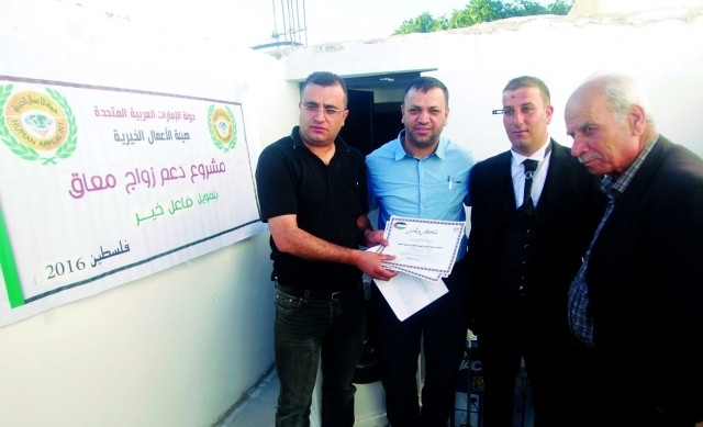 وأوضح أن الهيئة أقامت مصعداً كهربائياً للمستشفى الأهلي في مدينة الخليل مخصصاً لذوي الإعاقة، ليستفيد منه المرضى الذين لا يستطيعون التحرك بسهولة، ليسهل تنقلهم في أقسام المستشفى، وتقديم العلاج اللازم لهم، وشيدت منزلاً لعروسين من ذوي الإعاقة في بلدة المغير القريبة من جنين وزودته بالأثاث الكامل، ليتمكن العروسان من العيش سوياً بهدوء، حيث يعاني العريس من نزيف دماغي أصابه في الصغر وأثر على حياته ويعاني من ضعف في الطرف العلوي الأيمن من رأسه وضعف في الجهة اليسرى من جسده، وهو ما أصابه بالشلل بنسبة 60% ولا يستطيع العمل نتيجة طبيعة الإعاقة التي يعاني منها لكن الإعاقة لم تكن مانعا من إتمام زواجه بسبب حالة أسرته الفقيرة، حيث يعاني والده من فشل كلوي ولم يتمكن من إتمام زواجه وبلغ أكثر من ثلاثين سنة دون إتمام حياته الزوجية.