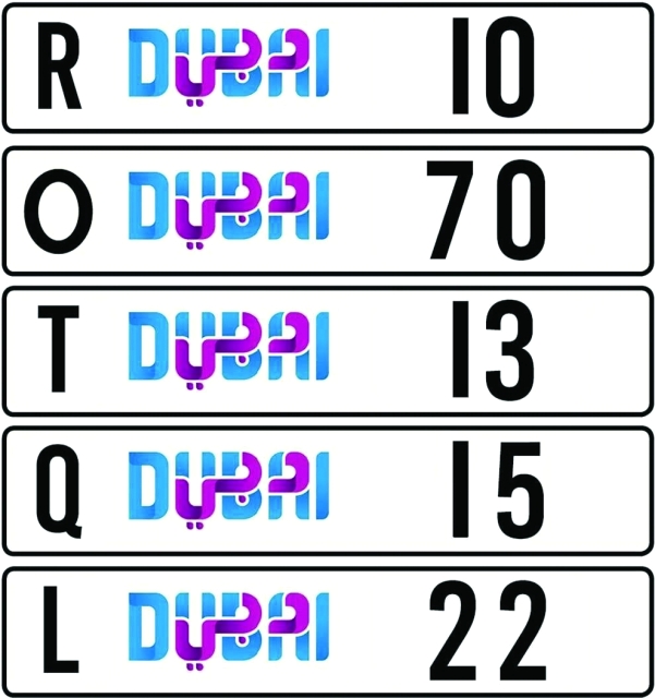 هذا، وتضم الأرقام المميزة التي أعلنت عنها الهيئة الأرقام التالية (22 L، وR10، وT13، O70 و Q15)، وسيعقد المزاد بتاريخ 21 يونيو المقبل في مدينة جميرا، وسيكون بتنظيم وإشراف مؤسسة الإمارات للمزادات.