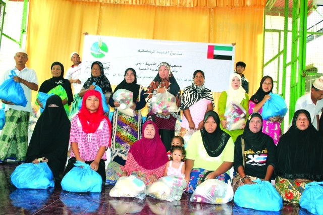 وقال السفير سيف عبد الله محمد الشامسي سفير الإمارات في مملكة تايلاند لـ «البيان»، إنه مع بداية شهر رمضان الكريم، تشرف سفارة الإمارات في تايلاند، على العديد من المشاريع الخيرية، ومنها إفطار الصائم، وزكاة الفطر، وكسوة العيد، كما يتم توزيع المساعدات الرمضانية على مراكز النازحين من اتحاد جمهورية ميانمار على الحدود التايلاندية، حيث انتهت السفارة من توزيع 1200 حقيبة رمضانية من مؤسسة خليفة بن زايد آل نهيان للأعمال الإنسانية، للاجئي ميانمار بالمخيمات في تايلند، إضافة إلى توزيع التمور على المساجد والمراكز والمؤسسات الخيرية والأسر المسلمة، والتي يتبرع بها هيئة الهلال الأحمر الإماراتي، وبعض المؤسسات الخيرية في الدولة.
