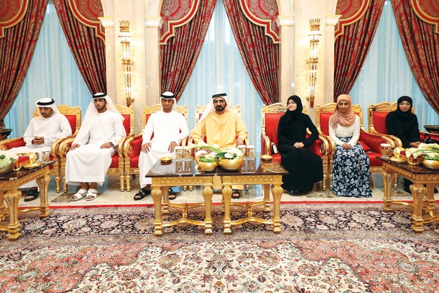 جاء ذلك خلال لقاء سموه، في قصر سموه في زعبيل، مساء أمس، بحضور سمو الشيخ حمدان بن محمد بن راشد آل مكتوم، ولي عهد دبي، وسمو الشيخ مكتوم بن محمد بن راشد آل مكتوم، نائب حاكم دبي، الطلبة المتفوقين والخريجين حمَلة الشهادات العليا في الجامعات والكليات الوطنية الاكاديمية منها والعسكرية، إلى جانب الأربعة الأوائل في الثانوية العامة للسنة الدراسية 2015 - 2016.