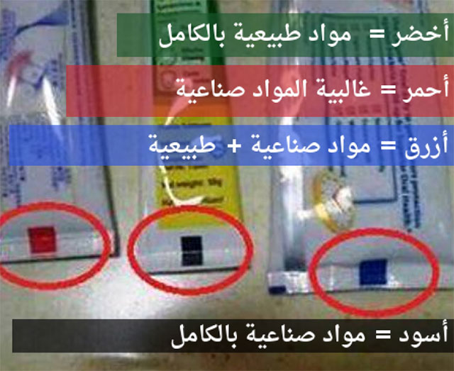 وأوضح أن الخطوط المطبوعة على طرف المعجون ليس لها علاقة بمكونات المعجون وإنما هي عبارة عن علامات تعريفية لتمكن أجهزة التصنيع من التعرف على علب المعجون وأماكن القطع المناسبة من خلال حساسات إلكترونية للون.