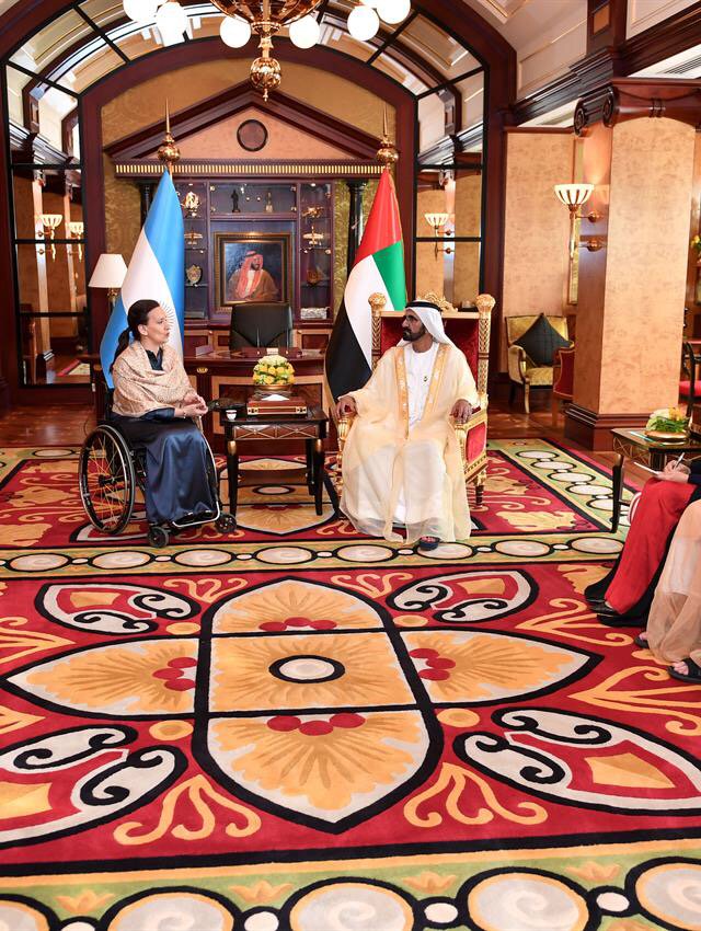 وقد رحب سموه بزيارة نائبة الرئيس الارجنتيني إلى الدولة معربا عن أمله في أن تسفر عن نتائج طيبة تدفع بعلاقات الصداقة والتعاون القائمة بين دولة الامارات والارجنتين إلى مستويات أعلى وأشمل تعود بالنفع المشترك على شعبيهما.