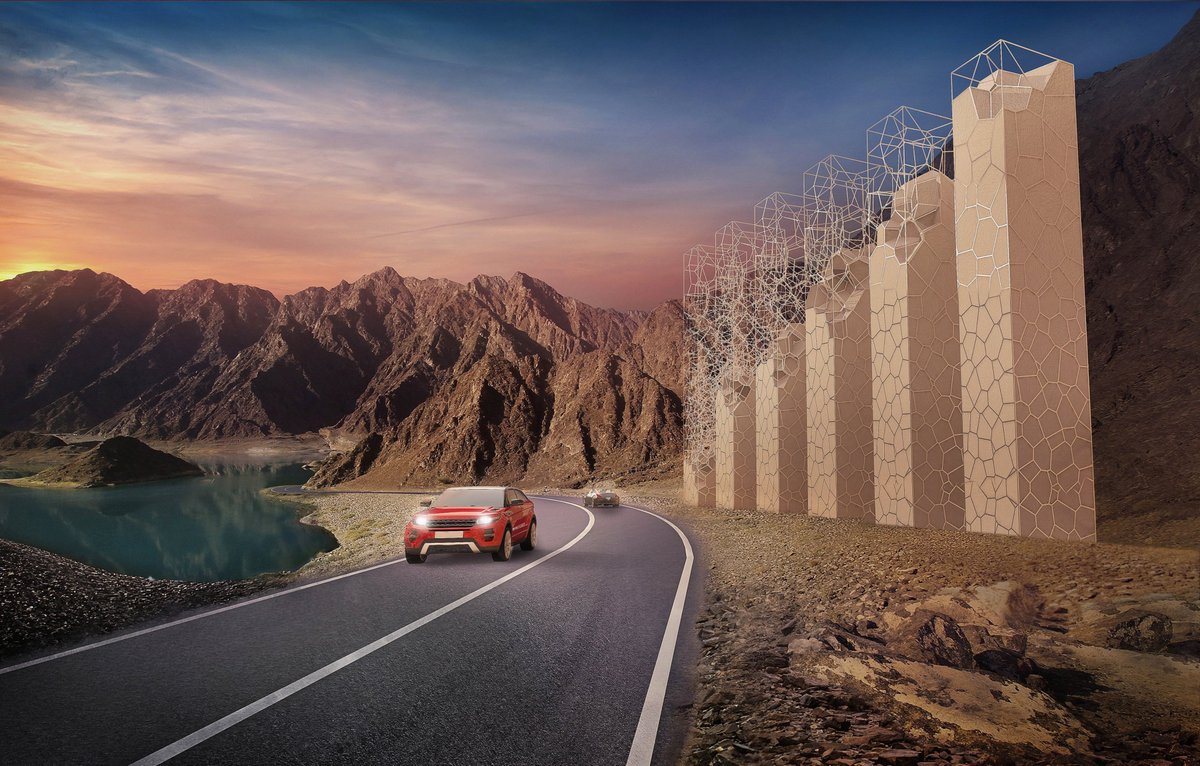 وبهذه المناسبة قال مطر الطاير: يتميز مشروع بوابة حتّا بتصميمه الفريد الذي يعكس هوية منطقة حتَّا وعناصر بيئتها بصورة حديثة ومبتكرة حيث رُوعي في التصميم أن يعبر عن جمالية المكان بجباله وتكويناته الصخرية المميزة وعكسها بصورة إبداعية على شكل أعمدة متتالية ومختلفة التشكيل والارتفاع لتعبر عن السمات البيئية للمنطقة ويرمز الشكل العمودي المرتفع لصلابة وشموخ جبال حتا بحيث يترك اثرا كبيرا في نفوس الزوار.