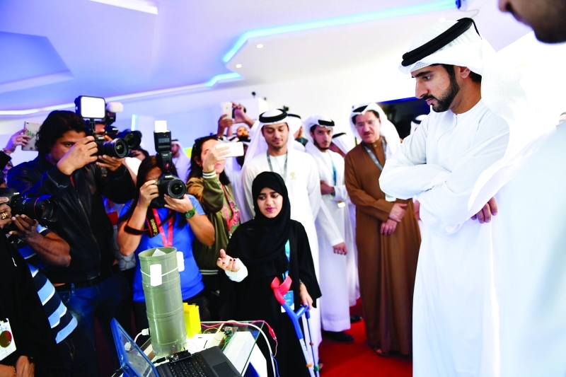 واطلع سموه خلال زيارته على العديد من المشاريع والتقنيات المقدمة من قبل الفرق المشاركة والتي تضمنت حلولاً عملية ومبتكرة في مختلف المجالات الاقتصادية والإنسانية والبحث العلمي المقدمة من جهات حكومية خاصة في الدولة، بالإضافة إلى العديد من المشاريع العالمية.
