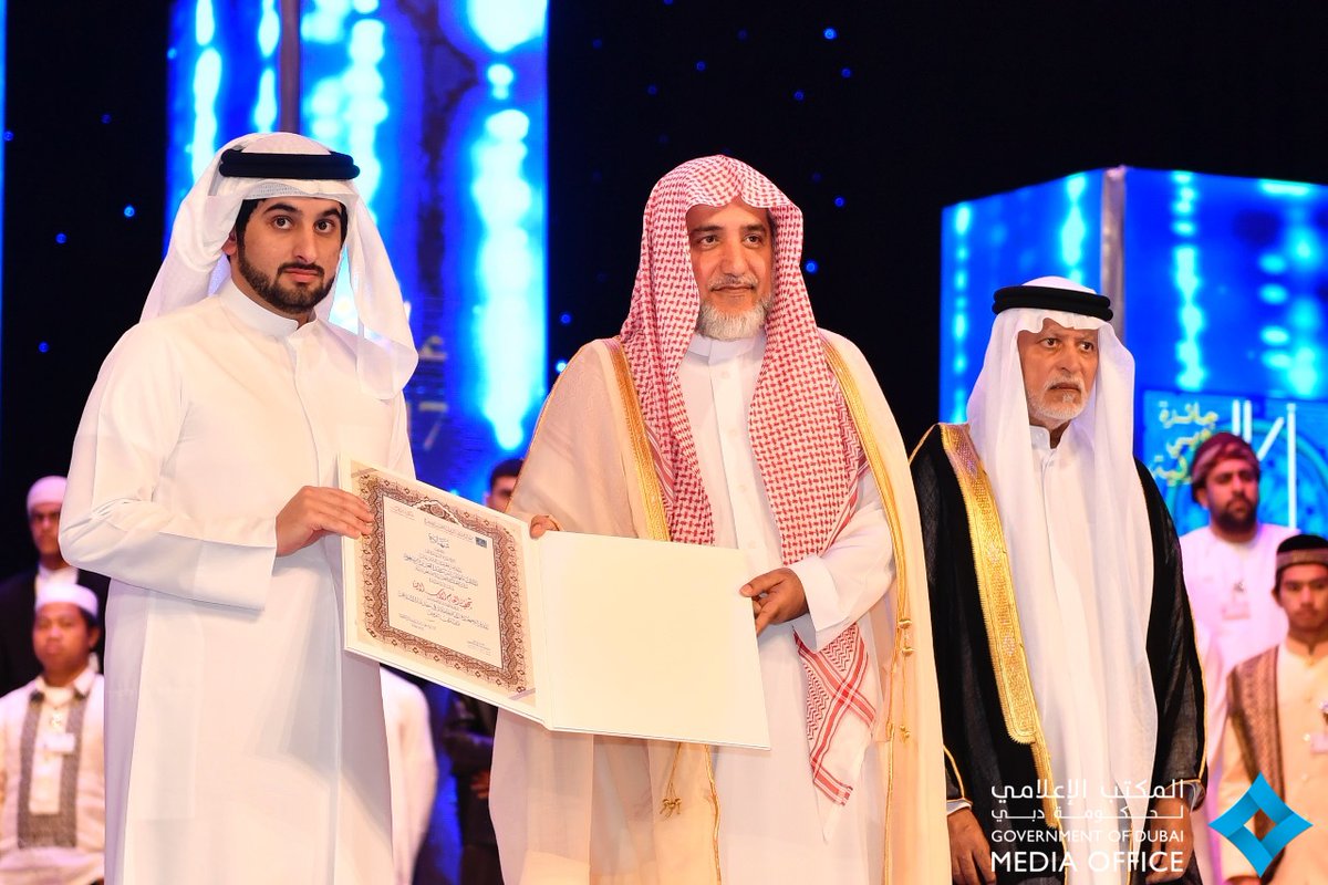 وقام سمو الشيخ أحمد بن محمد بن راشد آل مكتوم بتكريم العشرة الأوائل من المتسابقين في الجائزة والتي فاز بالمركز الاول فيها الشاب محمد طريق الاسلام من بنجلادش فيما حصل على المركز الثاني المتسابق حذيفة صديقي من الولايات المتحدة بينما حاز على المركز الثالث 3 متسابقين هم مود جوب من غامبيا وأحمد بن عبدالعزيز ابراهيم العبيدان من المملكة العربية السعودية و رشيد بن عبدالرحمان العلاني من تونس .