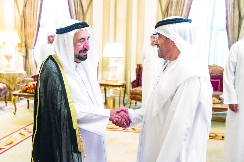 فقد تلقي سموهما التهاني من الشيخ فاهم بن سلطان القاسمي رئيس دائرة العلاقات الحكومية في الشارقة، والشيوخ وأعيان البلاد، ووجهاء القبائل والمواطنين، وأبناء الجاليات الإسلامية والأجنبية، وكبار الشخصيات ورجال الأعمال وأصحاب ومديري العديد من المؤسسات الاقتصادية والصناعية، وكبار المسؤولين الذين قدموا للسلام على سموه، وتقديم أسمى آيات التهاني والتبريكات بهذه المناسبة السعيدة.
