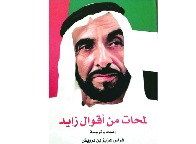 وانطلاقاً من هذا الأساس، يحوز كتاب «لمحات من أقوال زايد»، الذي أعده رجل الأعمال الإماراتي فراس عزيز بن درويش، أهمية كبيرة، إذ إنه عبارة عن مجموعة مختارة من أقوال المغفور له الشيخ زايد بن سلطان آل نهيان، طيب الله ثراه، وهي مرفقة بترجمة لها إلى اللغة الانجليزية، وشملت مختلف جوانب الحياة. كما أنها تعكس شخصيته العظيمة، رحمه الله.