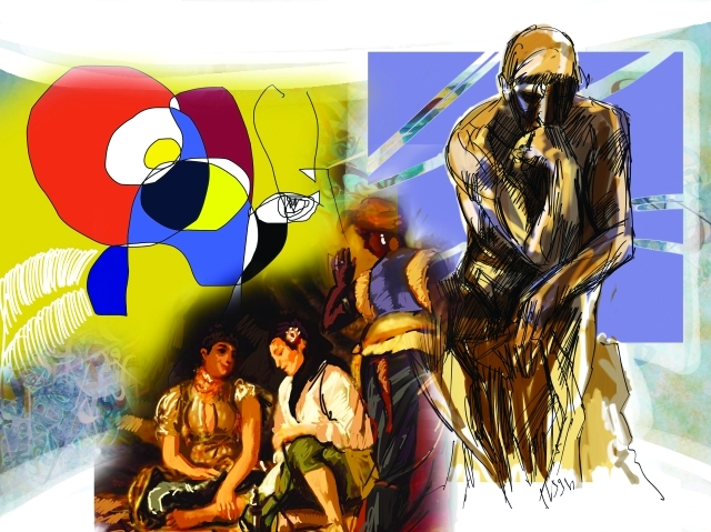 ثم ينتقل إلى الحديث عن فرديناند ديلاكروا، موضحاً أنه ولد في إحدى ضواحي «باريس عام 1798.. وتميز بالثقافة العامة الواسعة واحترامه للتراث وتذوقه للآداب والفنون. أما لوحته «مذبحة ساكس» فرسمها عام 1824 .