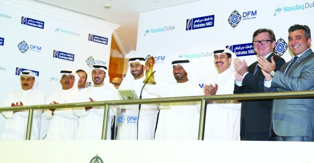 قرع سمو الشيخ أحمد بن سعيد آل مكتوم، رئيس مجلس إدارة بنك الإمارات دبي الوطني، أمس جرس بدء التداول احتفالًا بإدراج إصدارين من السندات في ناسداك دبي بقيمة إجمالية تبلغ 951 مليون دولار أميركي.