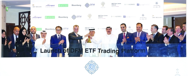 أطلق سوق دبي المالي أمس منصة تداول صناديق المؤشرات ETF، في خطوة تعد الأولى من نوعها بين أسواق المال الإقليمية. ويبلغ حجم نشاط صناديق المؤشرات عالمياً حالياً حوالي 3.7 تريليونات دولار.