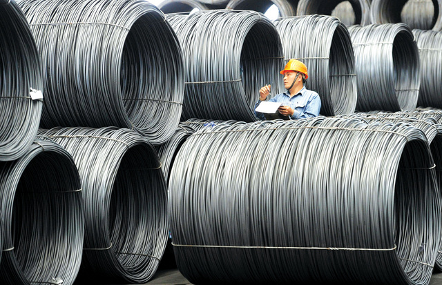 عامل يتفحص شحنات لفائف معدنية في أحد الموانئ الصينية حيث قالت شركة بي.اتش.بي بيليتون انها تتوقع مزيدا من التباطؤ في أسعار السلع الأولية وان المستثمرين فقدوا الثقة في سلامة الاقتصاد العالمي على المدى الأطول وذلك في أشد التصريحات حذرا حتى الآن من أكبر شركة تعدين في العالم. كما علقت الشركة خطة أعلنها الرئيس التنفيذي ماريوس كلوبرز في 2011 لانفاق 80 مليار دولار على مدار خمسة اعوام للتوسع في اقسام الحديد الخام والفحم والطاقة والمعادن الاساسية اعتمادا على استمرار الطلب القوي في السوق الرئيسية.