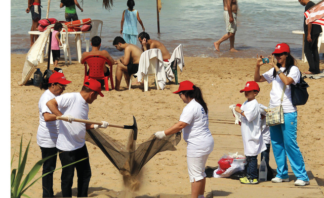 ناشطون من منظمات غير حكومية لبنانية يشاركون في تنظيف الساحل اللبناني في منطقة الروشة قرب بيروت ضمن «حملة الأزرق الكبير» وتركز الحملة على رفع مستوى الوعي لمشاكل الطبيعة على طول الخط الساحلي اللبناني، وعلى تنظيف الساحل اللبناني بأكمله. وهي شكل من أشكال دعم السياحة الشاطئية في البلاد.