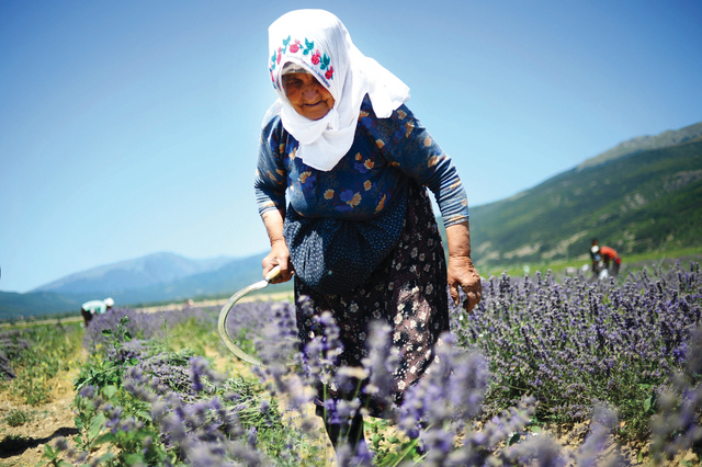 سيدة في قرية تارنيشجان البلغارية، تقوم بحصد زهور اللافندر التي تستخدم بشكل واسع في إنتاج زيوت صحية مستخدمة في المستحضرات الطبية والتجميلية. واستطاعت بلغاريا تصدر قمة أكبر منتجي زهرة اللافندر في العالم، بعد أن ظل اللقب حكراً على فرنسا لفترة طويلة من الزمان. وتعرض إنتاج الزهرة في فرنسا، لنكسات كبيرة خلال السنوات الأخيرة بسبب الآفات الزراعية.
