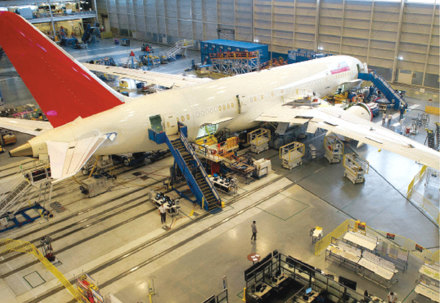 طائرة بوينغ 787 دريملاينر "طائرة الأحلام" تبنى لصالح الخطوط الجوية الهندية في خط التصنيع الجديد شمالي منطقة شارلستون في مدينة كارولينا الجنوبية، في الولايات المتحدة الأميركية. وذكرت هيئة إدارة السلامة الأميركية أنها تراجع اقتراح بوينغ لإصلاح مشكلة البطارية في طائرة 787 دريملاينر والتي تسببت بإيقاف رحلات هذه الطائرة حول العالم منذ منتصف الشهر الفائت. وبعد اجتماع مع المديرين التنفيذيين في بوينغ لمناقشة الخلل في البطارية قالت إدارة الطيران الاتحادي الأميركية إن بوينغ عرضت خطة لحل المشكلة.
