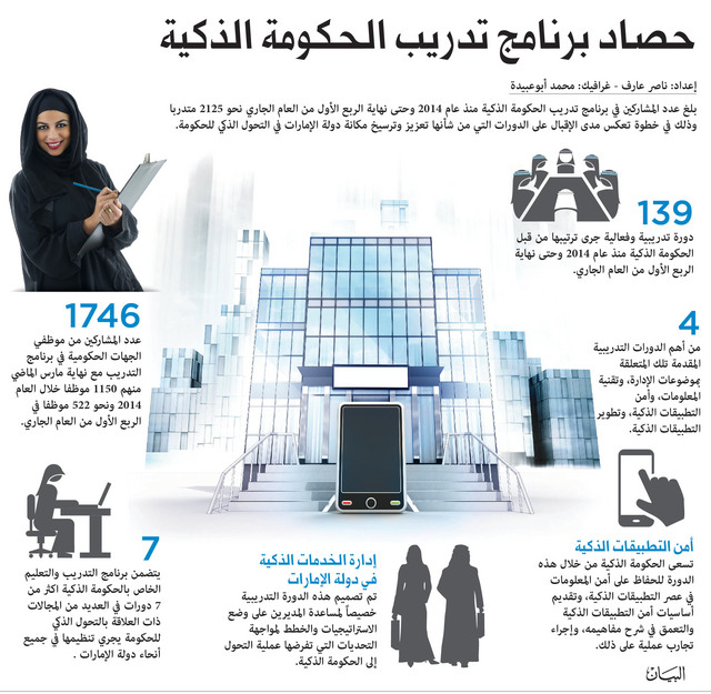 جرى تنظيم نحو 139 دورة تدريبية وفعالية من قبل الحكومة الذكية منذ عام 2014 وحتى نهاية الربع الأول من العام الجاري.