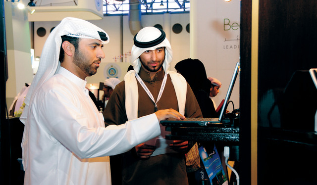 واشار حاتم النعيمي نائب رئيس الموارد البشرية في ادارة الكفاءات في مؤسسة اتصالات اننا كشركة ومؤسسة وطنية رائدة نمد ايدينا الى الى كل مواطني الدولة للالتحاق بالعمل في الادارات والاقسام المختلفة ولذلك نحرص على ان نشارك في معارض التوظيف حيث ان المؤسسة قد عينت اكثر من 150 موظفا في العام الماضي وحوالي 90% منهم من معارض التوظيف والتي توفر مجالا جيدا للتعرف عن سوق العمل والفرص المتاحة فيه سواء من قبل المؤسسات المشاركة أو من طالبي العمل.