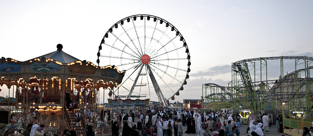 أصوات تتعالى من كل مكان تجذب النظر إليها والابتسام معها فحتى لو لم تكن مشاركا في اللعب فأنت تستمع بالنظر إلى الآخرين الغامرة وكأن الجميع عاد طفلا من جديد لا رقيب على سنه ولا منصبه، فالأب يشارك أبناءه المتعة والأم يتهلل قلبها تارة من فرحتها وتارة أخرى من خوفها على أبنائها إلا أنها في الوقت نفسه تؤمن بأنهم في ايدٍ أمينة.