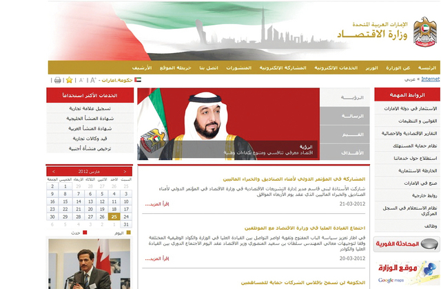 نجحت وزارة الاقتصاد في الالتزام بنسبة 100% بالمعايير المعتمدة للمواقع الالكترونية الحكومية الاتحادية وفقا لتقييم الهيئة العامة للمعلومات. والتزم الموقع الرئيسي بنسبة 100% بالأدلة الإرشادية والمعايير التي وضعها خبراء الهيئة العامة للمعلومات للجهات الاتحادية والتي تتوافق مع أفضل المعايير العالمية. وتأتي هذه الخطوة تماشياً مع مسؤوليات الوزارة وأهدافها الرامية إلى تعزيز خدمات البوابة الرسمية لحكومة الإمارات والمساعدة في إستراتيجية التحول الالكتروني للحكومة الاتحادية 2014.