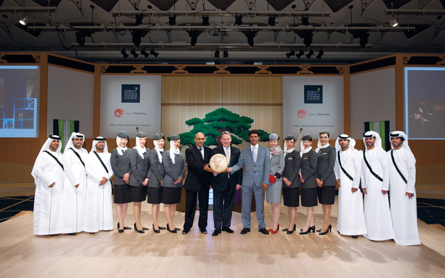وتسلّم جيمس هوغن، رئيس المجموعة والرئيس التنفيذي للاتحاد للطيران، درعاً على شكل كرة أرضية ترمز لـ"القمة العالمية الثالثة عشرة للسفر والسياحة" من ديفيد سكاوسيل، الرئيس والرئيس التنفيذي لـ"مجلس السفر والسياحة العالمي"، والذي أشار إلى أن منح شرف استضافة القمة العالمية لإمارة أبوظبي يرجع إلى إدراك المجلس لحماس ودعم حكومة الإمارة والجهات العاملة بقطاع السياحة لهذه المبادرة.