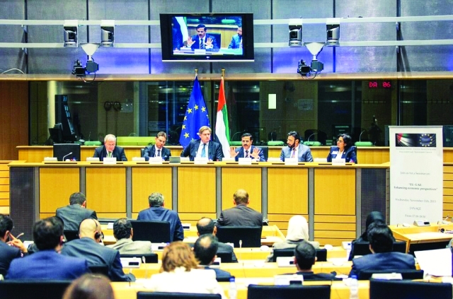 وترأس المنصوري نقاشات الطاولة المستديرة في مقر البرلمان الأوروبي في بروكسل التي أقيمت هذه السنة تحت شعار «الإمارات والاتحاد الأوروبي: تعزيز الآفاق الاقتصادية».