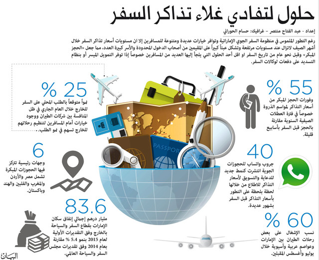 في محاولة لإيجاد مخرج لتفادي ارتفاع أسعار تذاكر السفر في مواسم الذروة سنوياً للأفراد والأسر المقيمة بالدولة بما يثقل كواهل أرباب الأسر، تشهد الإمارات تنامياً كبيراً ومتسارعاً خلال أعوام 2013 و2014 و2015 لظاهرة أطلق عليها في قطاع السفر والطيران «حجز تذاكر الصيف قبل الشتاء» بمعنى «الحجز المبكر» قبل نحو عام من تاريخ السفر الذي يؤدي إلى وفورات قد تتجاوز نسبتها 55% من أسعار التذاكر لمواسم الذروة خصوصاً في فترة العطلات الصيفية السنوية إذا ما تم الحجز قبل السفر بأسابيع قليلة.