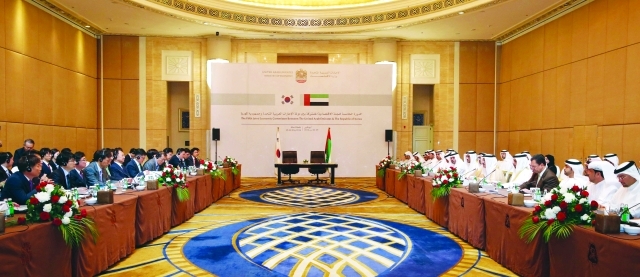 وكانت أعمال الدورة الخامسة لاجتماع اللجنة الاقتصادية الإماراتية ـ الكورية المشتركة، اختتمت أمس في أبوظبي بعد انعقاد استمر يومين، حيث ركزت محاور الاجتماع على تعزيز التعاون الاقتصادي في المجالات ذات الأهمية المشتركة في الخطط والسياسات الاقتصادية للبلدين، ومن أهمها التكنولوجيا الفائقة والابتكار ودعم قطاع المشاريع الصغيرة والمتوسطة والطيران والسياحة، فضلاً عن مواصلة العمل المشترك وفقاً لنتائج اجتماع الدورة الرابعة للجنة، والتي تضمنت عدة محاور في مقدمتها الطاقة والبنية التحتية، والتقدم الصناعي عبر البحث العلمي والتطوير، والتمويل والخدمات العامة، وخدمات الرعاية الصحية، والتعليم والتبادل الثقافي.