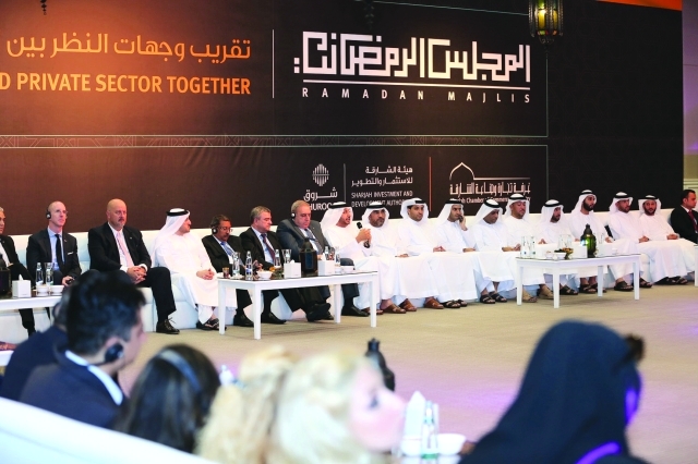 نظمت هيئة الشارقة للاستثمار والتطوير «شروق» بالتعاون مع غرفة الشارقة مساء الاثنين الماضي، مجلساً رمضانياً بعنوان «تقريب وجهات النظر بين القطاعين الحكومي والخاص» ناقش خلاله نخبة من رواد الأعمال وكبار الشخصيات سبل تعزيز التناغم بين القطاعين ودوره في النهوض بواقع المجتمعات في كل المجالات، لا سيما الاقتصادية منها، حيث تعد شراكة القطاعين بوابة التنمية ومفتاح الاستدامة والنمو في الدولة.