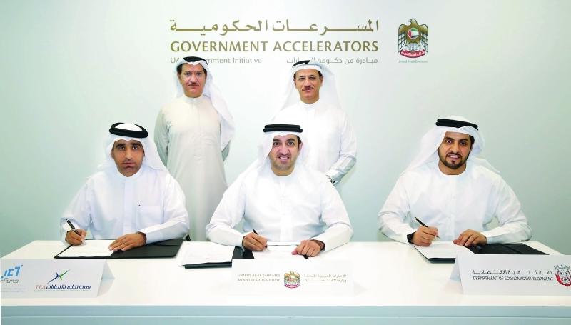 ، فيما مثل الهيئة العامة لتنظيم قطاع الاتصالات الدكتور عبد القادر إبراهيم الخياط رئيس مجلس أمناء «صندوق تطوير قطاع الاتصالات وتقنية المعلومات»، وحمد عبيد المنصوري المدير العام للهيئة، ومثل دائرة التنمية الاقتصادية بأبوظبي خليفة سالم المنصوري وكيل الدائرة بالإنابة. كما حضر حفل التوقيع عبد الله سلطان الفن الشامسي وكيل الوزارة المساعد لقطاع الصناعة، وعلي إبراهيم الحوسني وكيل الوزارة المساعد لقطاع الملكية الفكرية.