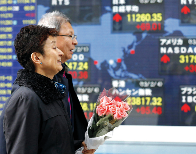 ارتفع مؤشر نيكاي الياباني لليوم الخامس على التوالي مسجلا أعلى مستوى في 33 شهرا أمس إذ أن ضعف الين دفع أسهم الشركات المصدرة للصعود بينما ظهرت علامات على تعافي شركات الإلكترونيات المتعثرة مما اجتذب مشتريات في أسهم باناسونيك وشارب من المستثمرين الأفراد. بينما ارتفع الدولار أمام اليورو وصعد إلى أعلى مستوى في عامين ونصف العام مقابل الين. وارتفع نيكاي 0.6٪ ليغلق عند 11260.35 نقطة. وصعد مؤشر توبكس الأوسع نطاقا 1.4٪ إلى 955.75 نقطة.
