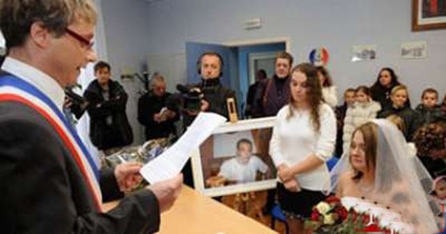 واقعة فريدة من نوعها شهدتها مدينة "نانسي" الفرنسية، حيث أقيم حفل زفاف للعروس "مجللي جورج"، وعريسها الذى توفي قبل موعد العرس بيومين في حادث على دراجته النارية باستخدام صورة العريس بدلا منه في الزفاف.