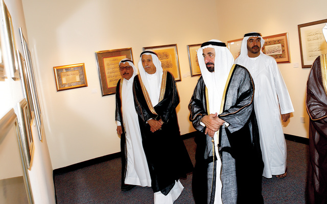 افتتح صاحب السمو الشيخ الدكتور سلطان بن محمد القاسمي عضو المجلس الأعلى حاكم الشارقة، مساء أمس، بحضور سمو الشيخ سلطان بن محمد بن سلطان القاسمي ولي عهد ونائب حاكم الشارقة، فعاليات ملتقى الشارقة للخط في دورته الخامسة، تحت شعار (كون)، وذلك في ساحة بيوت الخطاطين بمنطقة التراث بقلب الشارقة، والذي تنظمه إدارة الفنون بدائرة الثقافة والإعلام وتستمر فعالياته حتى الأول من يونيو القادم.