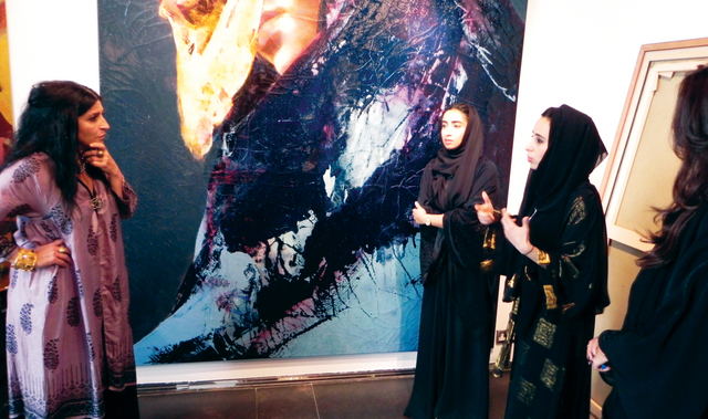 وهند المري وزينب الهاشمي وشيخة المزروعي وخلود خوري ونورا الجامع، بحضور الفنان خليل عبد الواجد مدير قسم الفنون البصرية في الهيئة في غاليري أوبرا وسط مدينة دبي، حيث تعرض الفنانة الاسبانية 30 عملا ذات موضوع واحد تحت عنوان" ذكريات مغلفة بورق الذهب"، الذي تم افتتاحه يوم الثلاثاء الماضي ويستمر لمدة شهر.