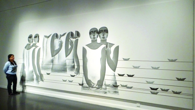 و«ما زلت أحلم» للتشكيلي السوري صفوان داحول في غاليري «أيام» بمجمع السركال في منطقة القوز، واحد من تلك المعارض التي تبقى في ذاكرة المشاهد لزمن طويل بما تحمله من جمالية في المضمون الإنساني والأسلوب.