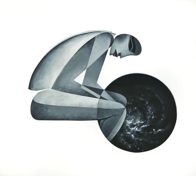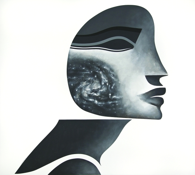 ويتصاعد التأثير الدرامي في أعمال المعرض لدى وقوفه أمام اللوحة التي تنظر فيها المرأة إلى دائرة الكون في حالة تأمل عميق، لتنعكس صورة الكون على وجنتها في لوحة أخرى. وبصمت واعتصام عن المشاهد، تحكي له برموزها عن أحداث جرت وهي تحجب وجهها عنه، ولكن لتعطيه في لوحتها أحد مفاتيح الوجع الذي رمزت له بالسكين علامة القتل.