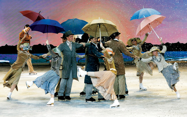 راقصات وراقصون يرفعون المظلات أثناء تقديمهم الباليه الأسطورة »بحيرة البجع« المكونة من أربعة فصول على القاعة الثلجية رويال ألبيرت هول في لندن، يتزلجون على أنغام الموسيقار الرومانتيكي الروسي تشايكوفسكي الذي قدم مسرحيته للمرة الأولى على مسرح البولشوي بموسكو في 4 مارس 1887. ولاتزال تعرض على المسارح العالمية حتى الآن وبأشكال مختلفة.