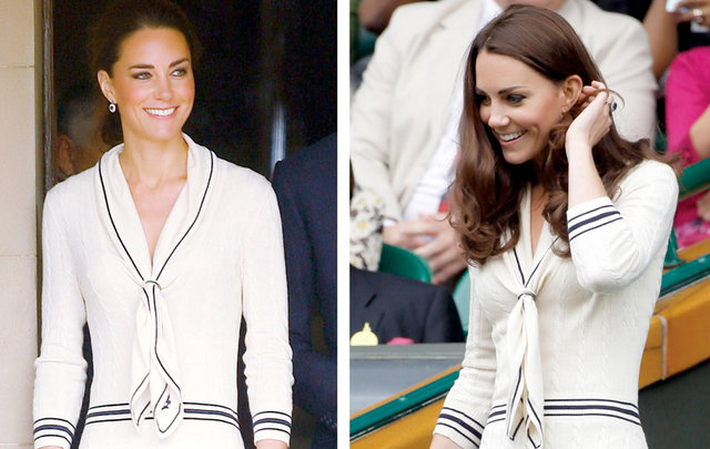 صورتان مختلفتان لكيت ميدلتون دوقة كامبردج ولكنهما تتشابهان بالشكل وتتكاملان بالأبعاد، الأولى خلال زيارتها لجزيرة الأمير ادوارد في كندا في 4- 7- 2011 والثانية خلال حضورها مباراة في ويمبلدون في 4 يوليو 2012 حيث ارتدت كيت في الزيارتين ثوباً واحداً هو (الكسندر مكوين) نفسه ، و كانت طبعا متألقة و جذابة .