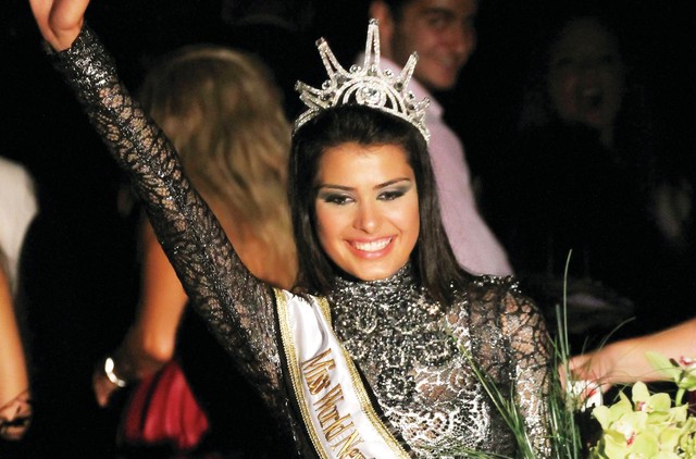 ملكة جمال العالم العارضة السوبر مينا ميلوتنوفيتش من صربيا متوجة بتاج الجمال تزينها بالبسمة الفاتنة رافعة ملوحة بالتحية للذين دب بهم الحماس لفوزها المستحق تقف أمام عدسات المصورين، بعد تتويجها ملكة جمال العالم للعام الحالي في بيروت.