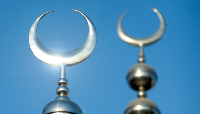 يعتبر الهلال عنصراً ملازماً ومكملاً للمآذن والقباب فوق المساجد الهدف منه تحديد اتجاه القبلة، وفي الصورة مسجد راشد محمد بخيت الفلاسي هو واحد من مساجد دبي الذي ترتفع فوق قبابه أسطوانتان تتربع فوقهما علامة الهلال مزينة بنقوش أقل قطراً تزيده جمالاً وبهجة.