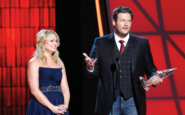 حصد الثنائي ميراندا لامبرت وبليك شيلتون4 جوائز في حفل توزيع جوائز موسيقى الريف/الكانتري في ناشفيل من ضمنها جائزة فنان العام لشيلتون وجائزة أفضل أغنية للعام لأغنيتهما الثنائية "من أجلك".