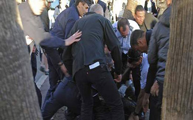 وكانت قناة كانال بلوس التلفزيونية الفرنسية تجري مقابلة مع والتز الممثل النمساوي الفائز بجائزة أوسكار ومع الممثل الفرنسي أوتيه في فقرته الإخبارية المسائية من موقع على الشاطئ أمام حشد من المشاهدين عندما أطلق رجل طلقتين في الهواء.