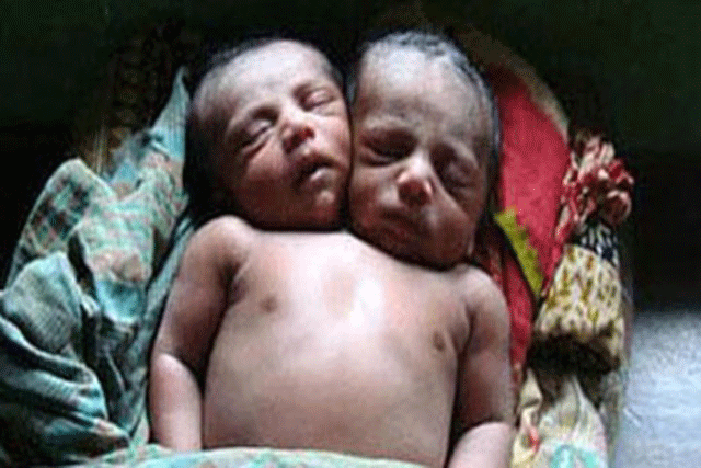 وضعت سيدة في زيمبابوي توأمين برأسين منفصلين وجسد واحد.. والطفلان ولدا بجسد واحد وقلبين وأربع رئات وعمودين فقريين وذراعين وساقين وجهاز تناسلي ذكري واحد.