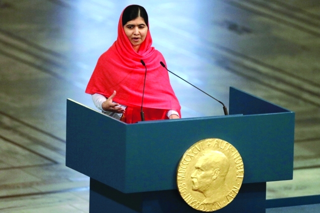 تسلمت الناشطة الباكستانية الشابة ملالا يوسف زاي أمس، جائزة نوبل للسلام مناصفة مع الهندي كايلاش ساتيارثي المدافع عن حقوق الأطفال.