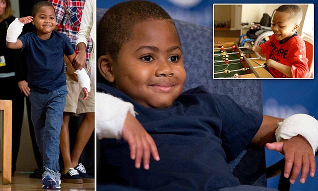 ولكن والدته لم تكتفي بذلك، وأرادت له حياة أفضل فقررت بموافقة طفلها إخضاعه لعملية زرع للأطراف.