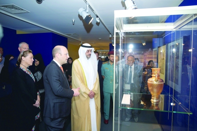 افتتح سمو الشيخ سلطان بن محمد بن سلطان القاسمي، ولي العهد نائب حاكم الشارقة، صباح أمس، بمتحف الشارقة للحضارة الإسلامية، معرض «الزجاجيات الاستشراقية - روائع من متحف لودفيغ ويوسف لوبماير في فيينا» الذي يستمر فاتحاً أبوابه أمام الجمهور حتى تاريخ 16 يناير المقبل. وتجول سموه في جنبات المعرض وردهاته الذي ضم قطعاً فنية إبداعية مستوحاة من تقاليد الفن الإسلامي تعود إلى القرن 19 الميلادي.