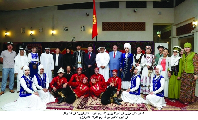 زار إيشيمبيكوف سفير الجمهورية القيرغيزية لدى الدولة أمس فعاليات أسبوع التراث القيرغيزي في ختام أعمالها التي نظمها معهد الشارقة للتراث ضمن أجندته الشهرية في برنامج أسابيع تراث العالم حيث يستضيف فيها المعهد تجربة تراثية من دولة عربية شقيقة أو دولة أجنبية صديقة في مركز فعاليات التراث بالشارقة «البيت الغربي - سابقا».