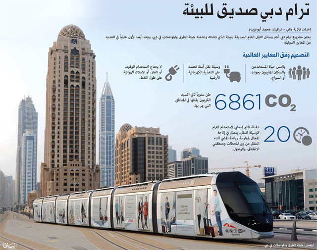 يعتبر مشروع ترام دبي أحد وسائل النقل العام الصديقة للبيئة الذي دشنته وتشغله هيئة الطرق والمواصلات في دبي‘ ويعد أيضاً الأول عالمياً في العديد من المعايير الدولية.