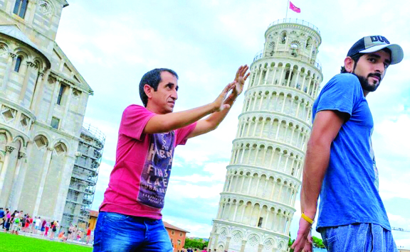 سمو الشيخ حمدان بن محمد بن راشد آل مكتوم، ولي عهد دبي، يرافقه الشيخ سعيد بن مكتوم، في لقطة تعبيرية اشتغلت على أبعاد الصورة، يظهر فيها برج بيزا المائل الشهير في إيطاليا، في الخلفية، كجزء من نسيجها المتحرك، وقد نشرها سموه على موقع «انستغرام»، وتفاعل معها العديد من المتابعين على مواقع التواصل.