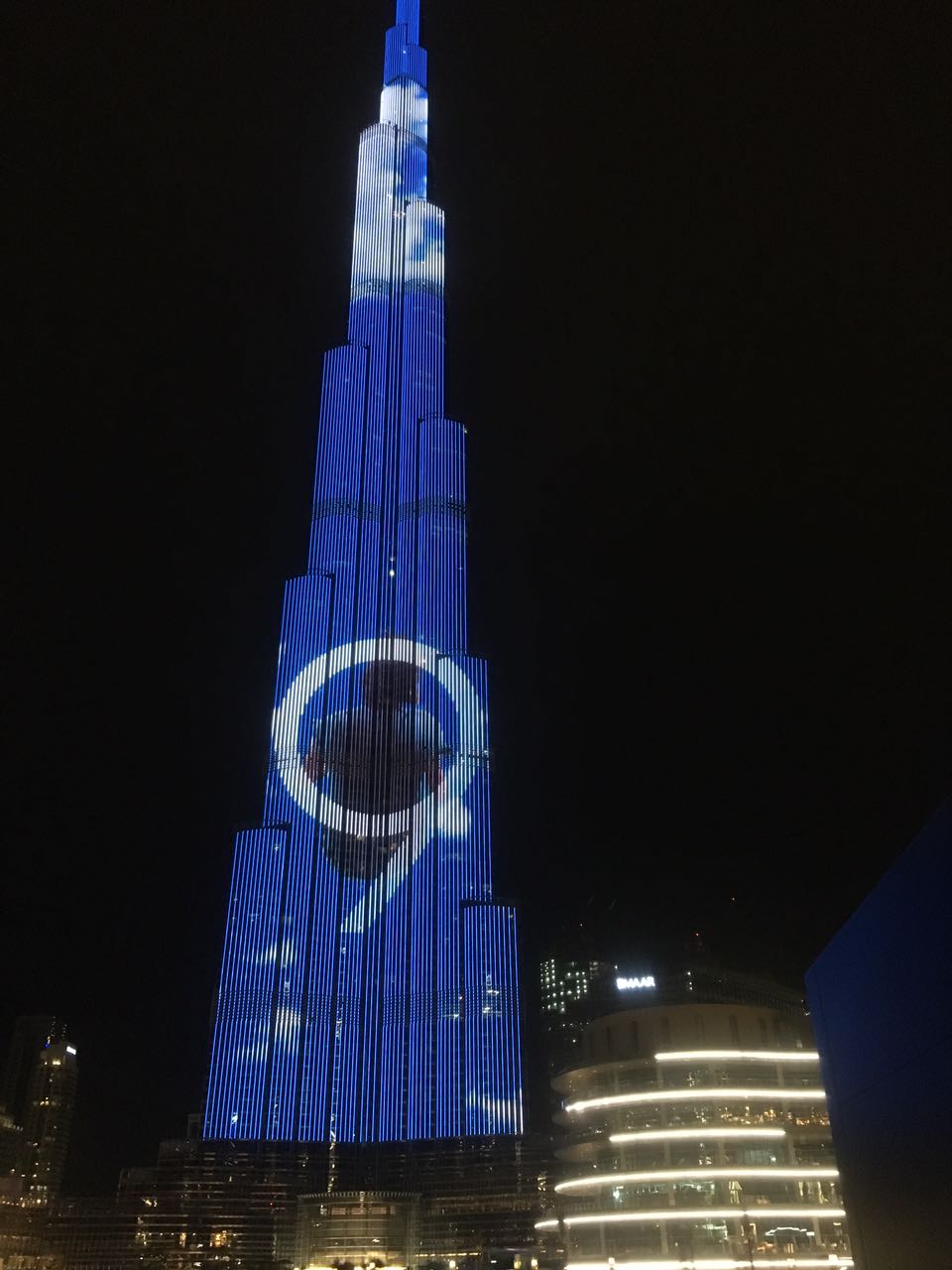 وتم عرض اعلان الهاتف الدعائي على البرج، في لوحة فنية تفاعلية مبهرة.