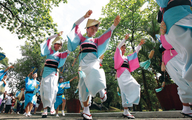 امتزجت فنون التراث الفني بروحية دلالة التقارب الثقافي، خلال أداء راقصات من فرقة "كيكوسوسويرين" اليابانية، مجموعة لوحات فنية أدائية متقنة، بين الأشجار المزهرة، أمس، في مدينة كويزون بالفلبين، بمناسبة ذكرى مرور عام واحد على كارثة الزلزال وموجات المد القاتلة في اليابان، التي نتج عنها، قرابة الـ002 ألف قتيل ومفقود. )
