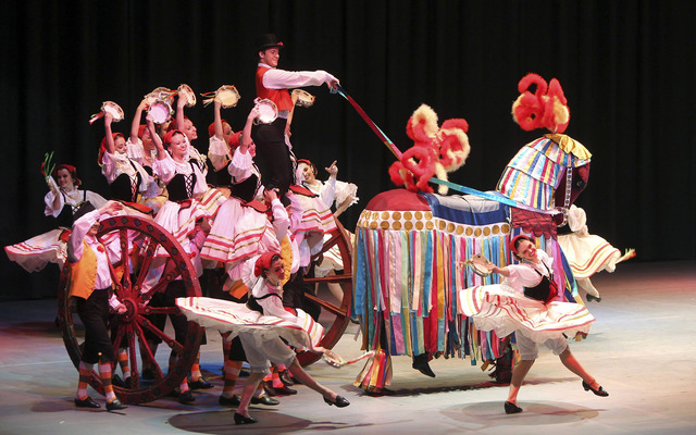 راقصون وراقصات روس من فرقة باليه "ماسييف" يقدمون عروضهم الساحرة بأزياءهم المزركشة التي أبهروا بها الجمهور على مسرح قصر الثقافة في عمان بالأردن أول من أمس، بمصاحبة أنغامهم الصادرة عن الدفوف الصغيرة التي يحملونها بأياديهم، في مشهد شرقي راقص قدمته بحميمية الفرقة الروسية.
